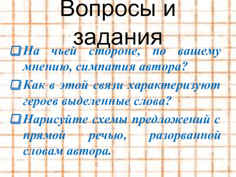 Нарисуйте схемы предложений с прямой речью, разорванной словам автора.