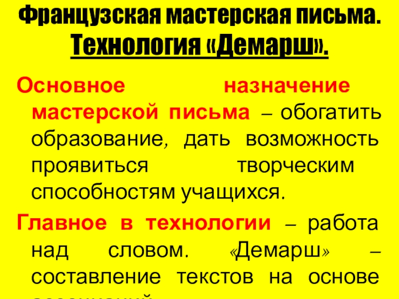 Главное в технологии – работа над словом. «Демарш» – составление текстов на основе ассоциаций.