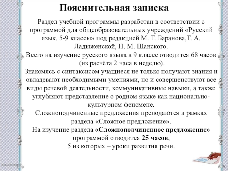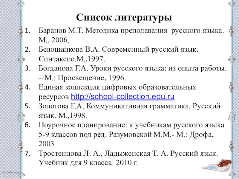 Программы общеобразовательных учреждений. Русский язык. 5-9 классы / Авторы: Т. А. Ладыженская, М. Т. Баранов – М.: Просвещение, 2015.