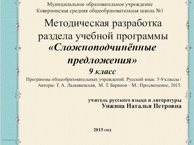 «Сложноподчинённые предложения»