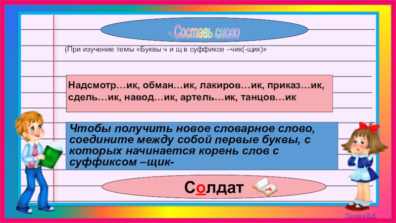 (При изучение темы «Буквы ч и щ в суффиксе –чик(-щик)»