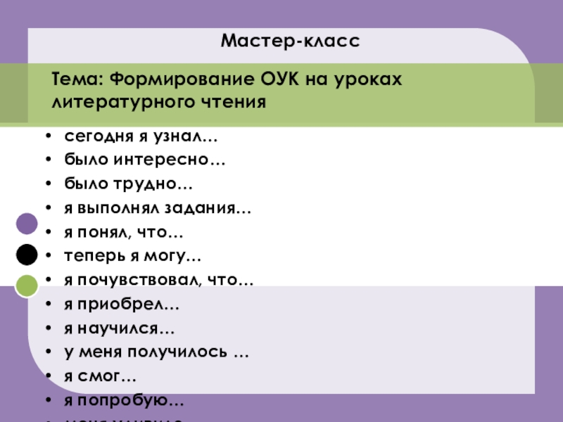 Тема: Формирование ОУК на уроках литературного чтения