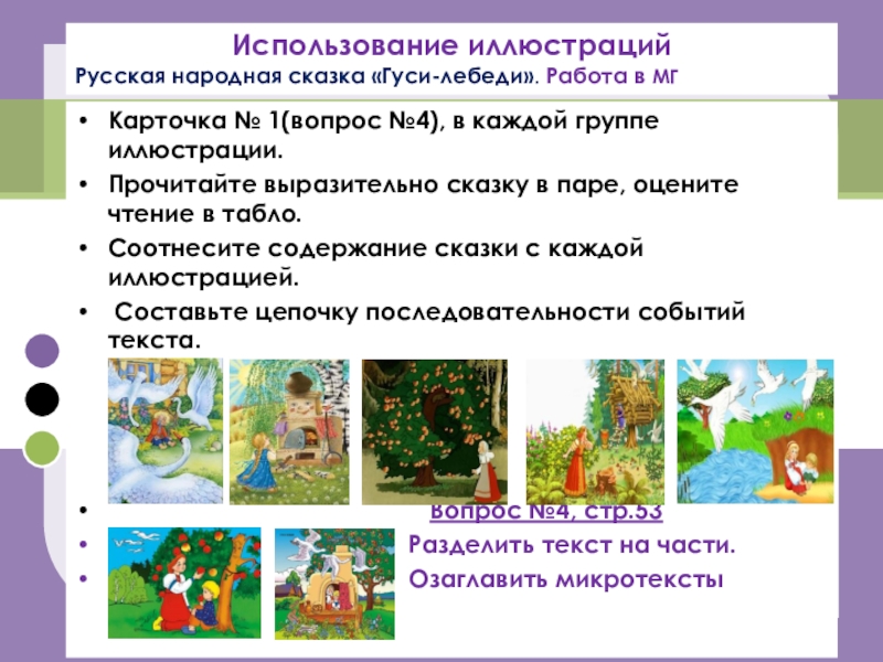 Русская народная сказка «Гуси-лебеди». Работа в МГ