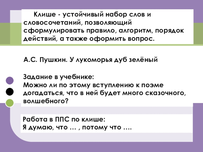 Работа в ППС по клише: