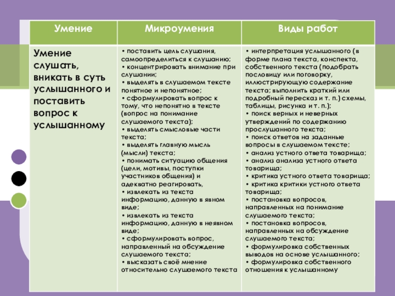 Умение слушать, вникать в суть услышанного и поставить вопрос к услышанному