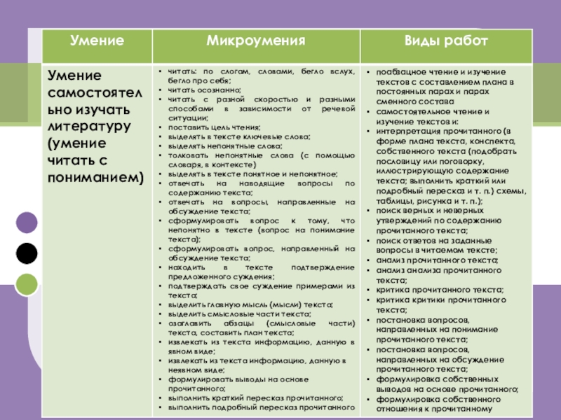 Умение самостоятельно изучать литературу (умение читать с пониманием