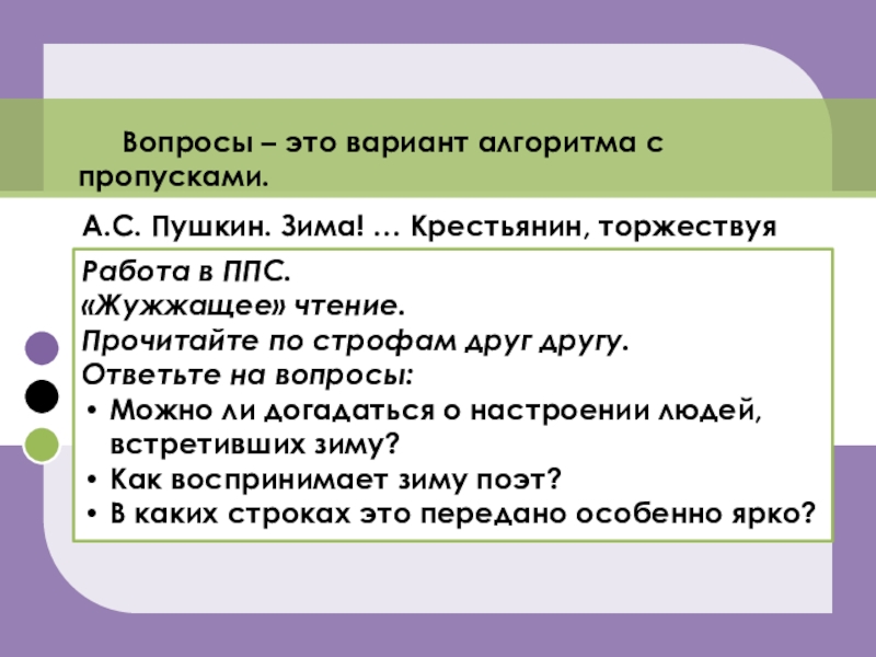 Вопросы – это вариант алгоритма с пропусками.