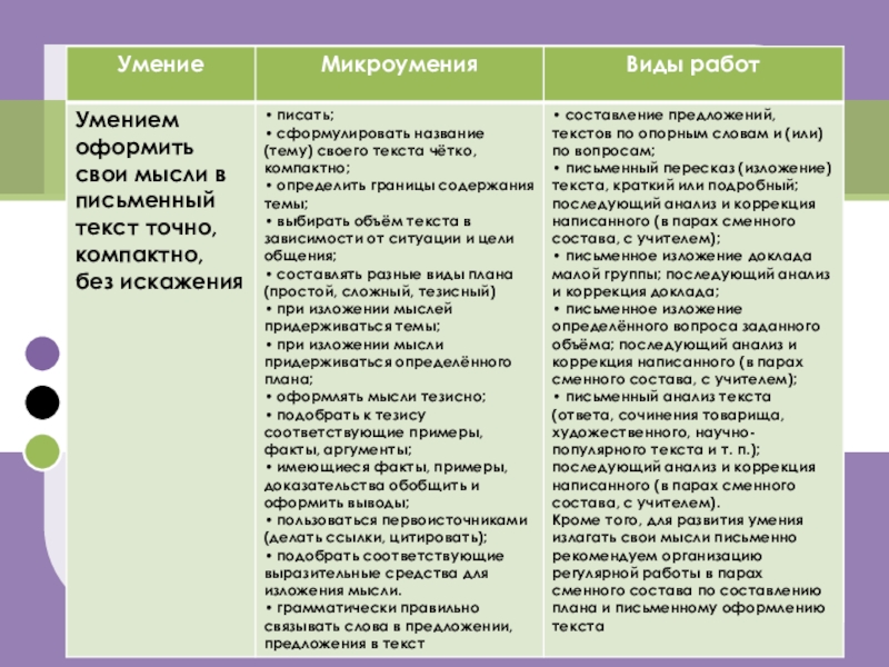 Умением оформить свои мысли в письменный текст точно, компактно, без искажения