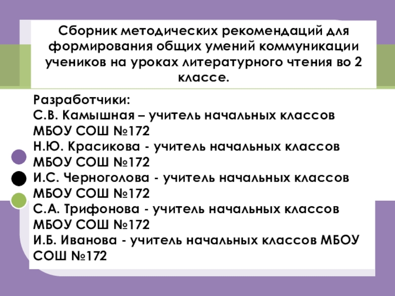 С.В. Камышная – учитель начальных классов МБОУ СОШ №172