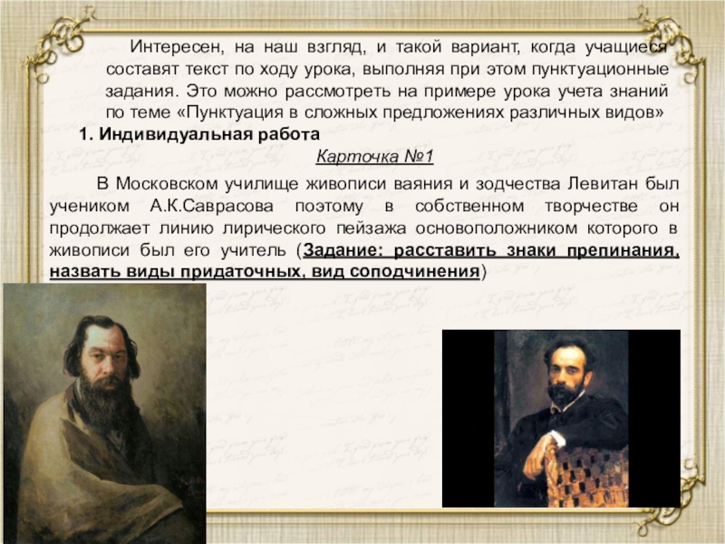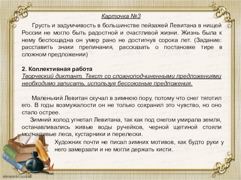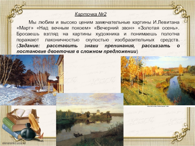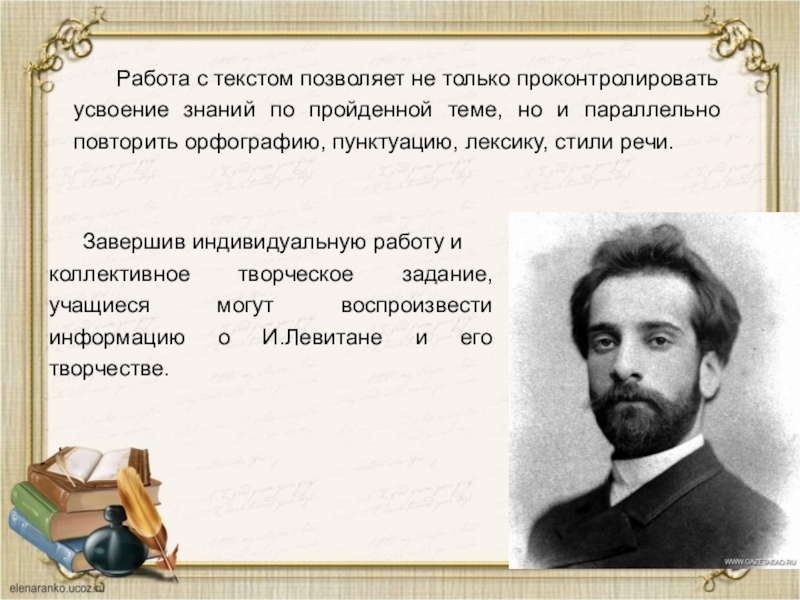 коллективное творческое задание, учащиеся могут воспроизвести информацию о И.Левитане и его творчестве.