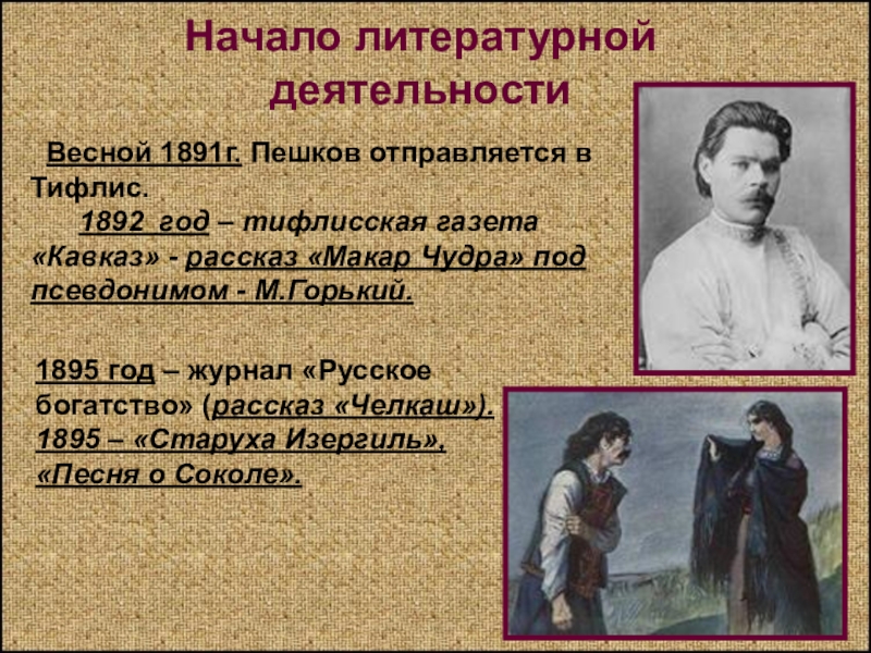 1895 год – журнал «Русское богатство» (рассказ «Челкаш»).