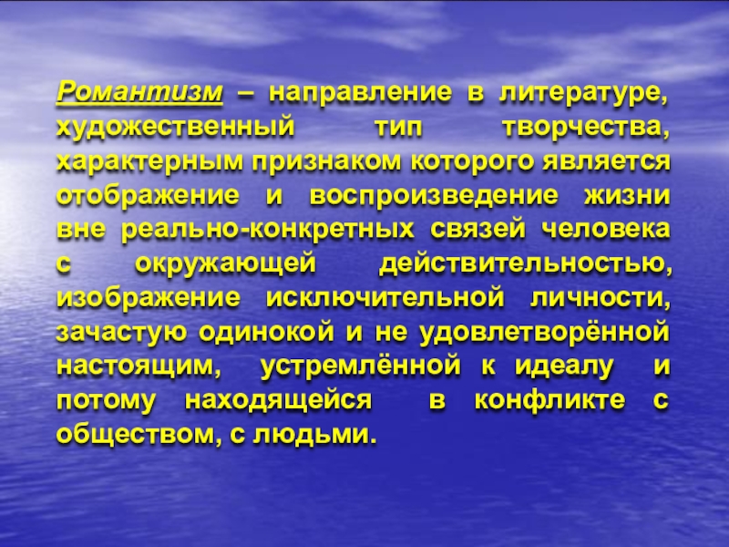 Идеал, воспевает его красоту, смелость, подвиг ради любви к людям