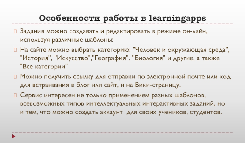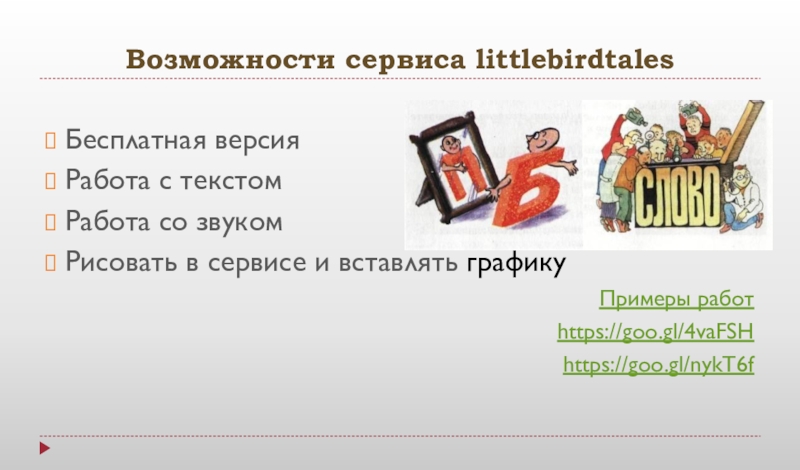 Это сайт презентаций, где можно хранить и обмениваться своими презентациями, докладами, проектами, шаблонами в формате PowerPoint с другими пользователями. Мы помогаем школьникам, студентам, учителям, преподавателям хранить и обмениваться учебными материалами.