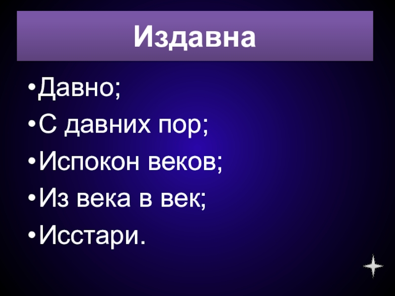 Издавна Давно;С давних пор;Испокон веков;Из века в век;Исстари.