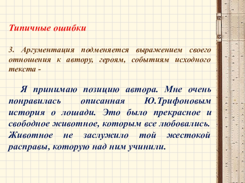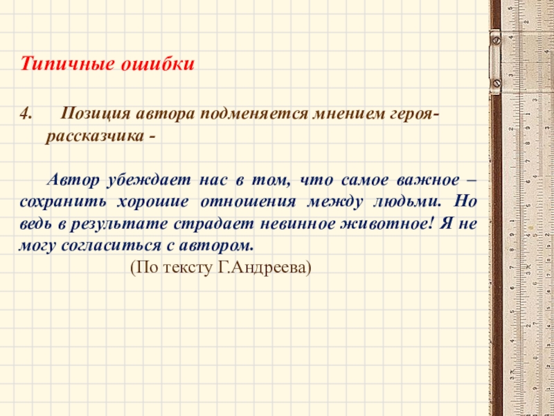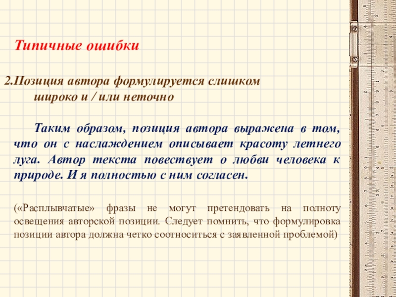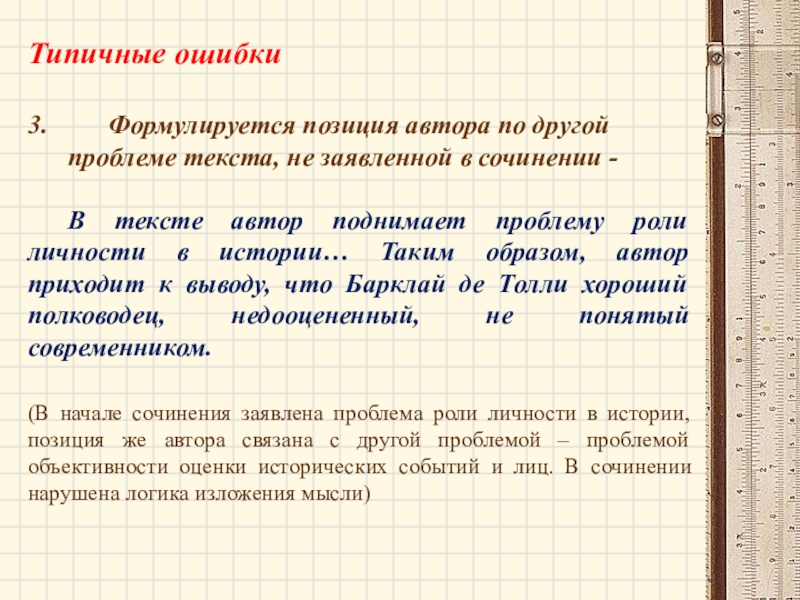 непонимание учащимся функций структурных частей сочинения (О чем текст? Какие вопросы поднимает автор? – выявление проблемы; Что автор хочет сказать своим текстом? – позиция автора)