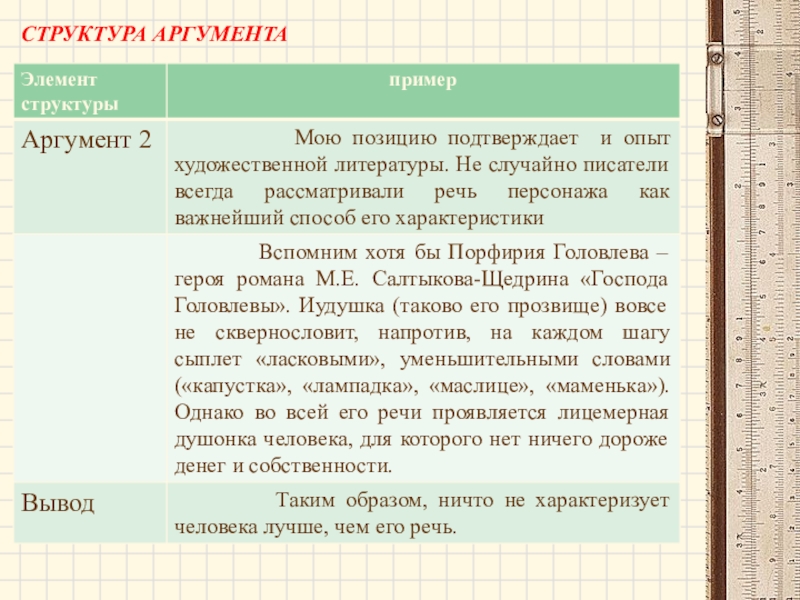 позицию, логично включены в текст, служат основанием для выводов, созвучных с главным тезисом. Нет конкретного примера из художественной, публицистической или научной литературы