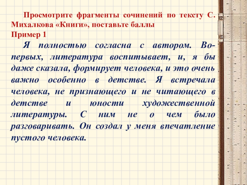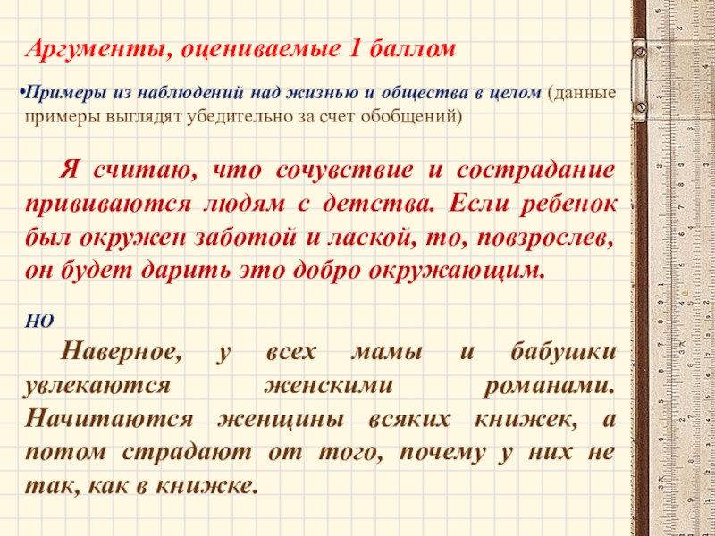 мнение о проблеме, поставленной автором (согласившись или не согласившись с позицией автора), но не привели примеры.