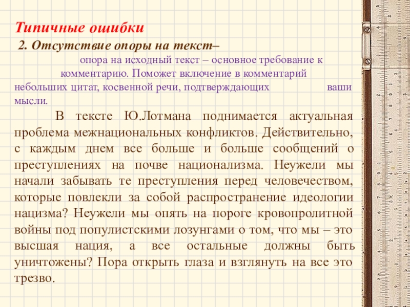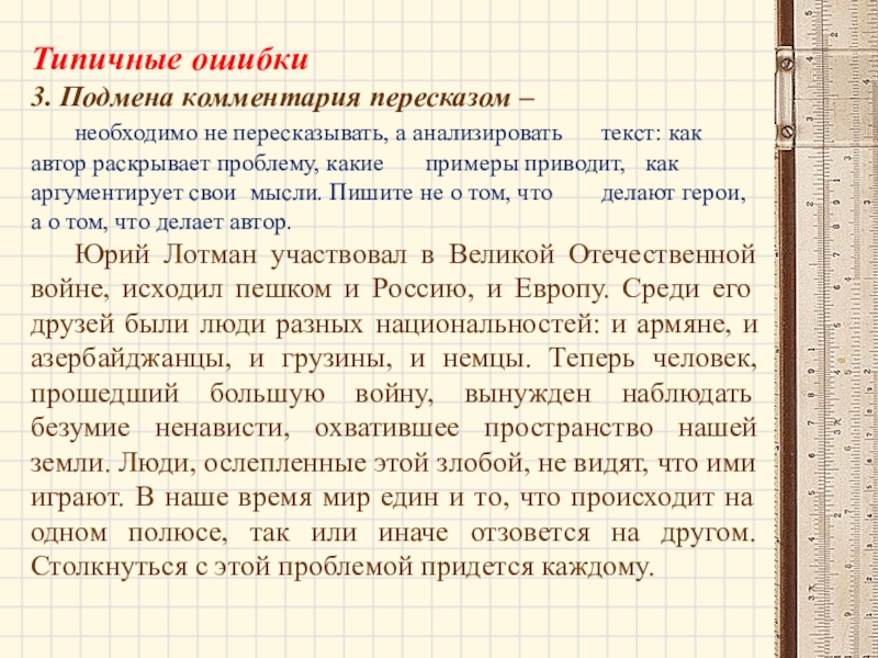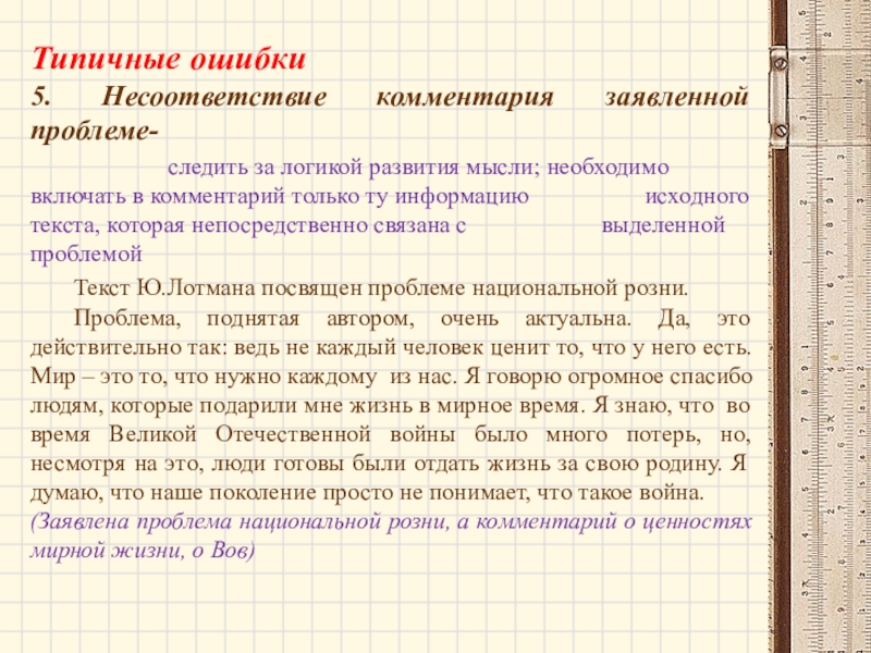 непонимание учащимся функций структурных частей сочинения (О чем текст? Какие вопросы поднимает автор? – выявление проблемы), или отсутствие навыков выявления проблемы