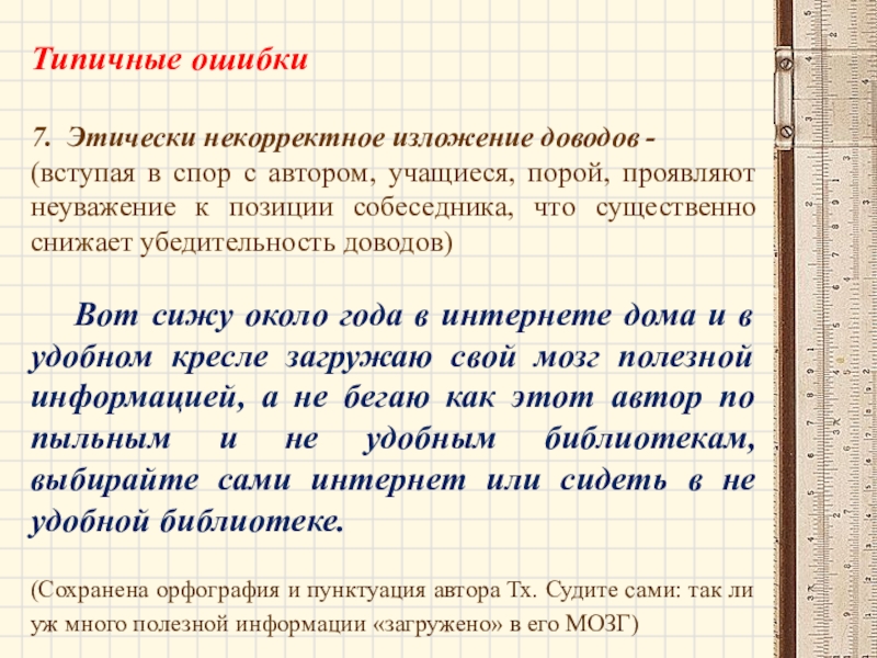 обусловлено неумением выделять главное, вычленять смысловые части ; текст воспринимается не как цельное высказывание, обращается внимание на отдельные его фразы