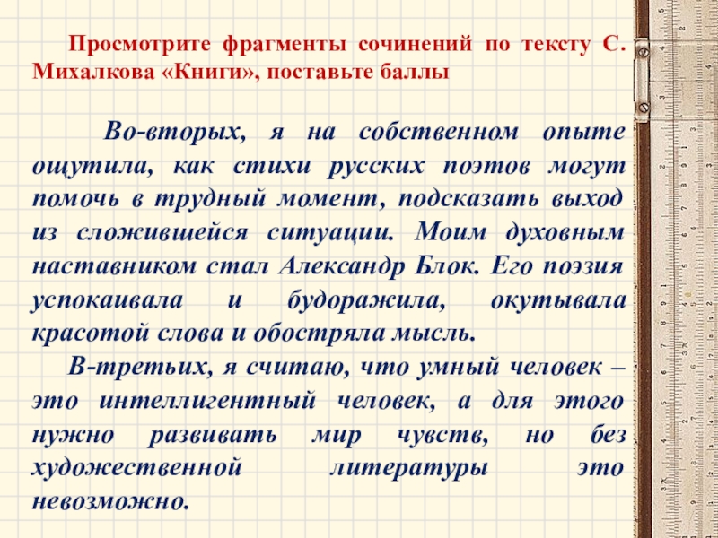 4. «Проблема, которую хотел показать нам С. Михалков такова: дети в настоящее время не читают книг.»