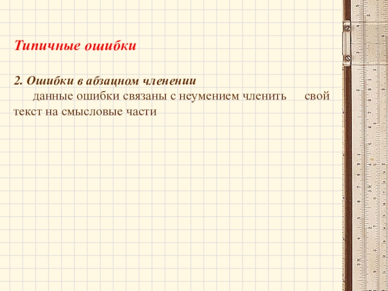 нарушения абзацного членения (либо 3-х частное, либо несколько частей со своими микротемами в каждой)