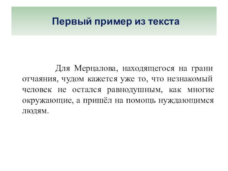 Для Мерцалова, находящегося на грани отчаяния, чудом кажется уже то, что незнакомый человек не остался равнодушным, как многие окружающие, а пришёл на помощь нуждающимся людям.