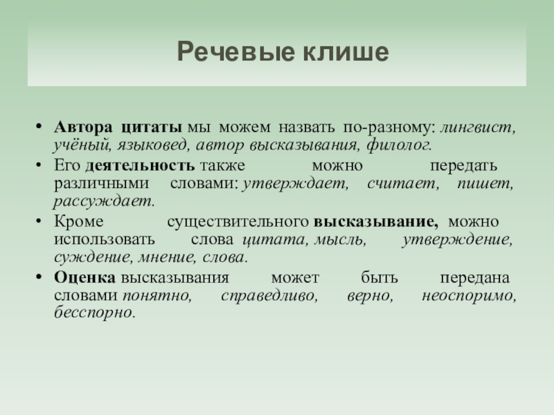 Автора цитаты мы можем назвать по-разному: лингвист, учёный, языковед, автор высказывания,