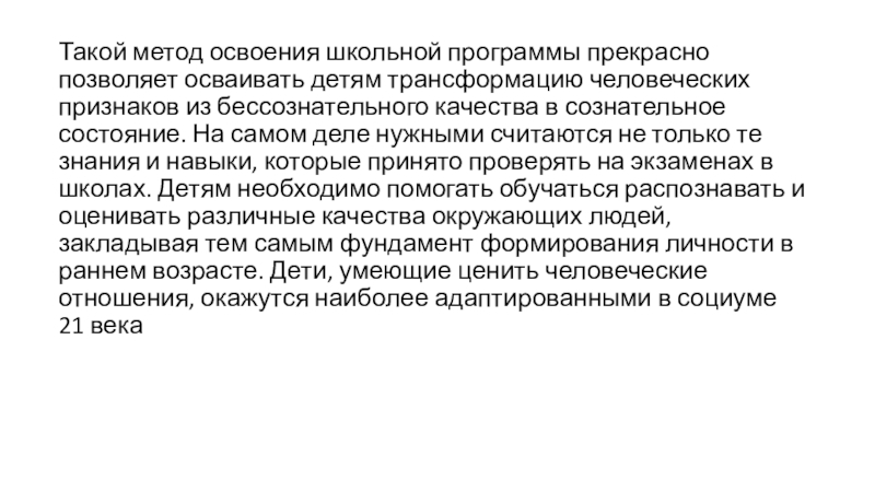Слайд 10Такой метод освоения школьной программы прекрасно позволяет осваивать детям трансформацию человеческих