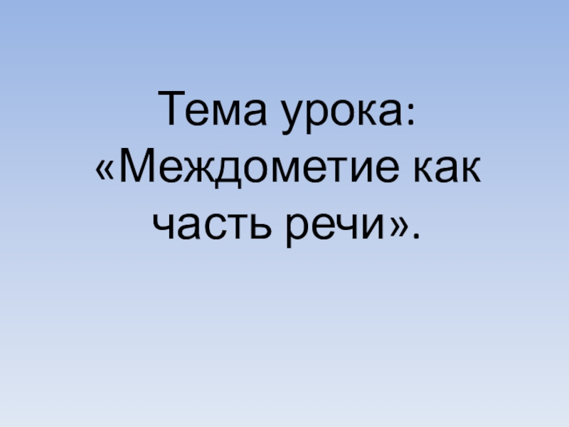Тема урока: «Междометие как часть речи».