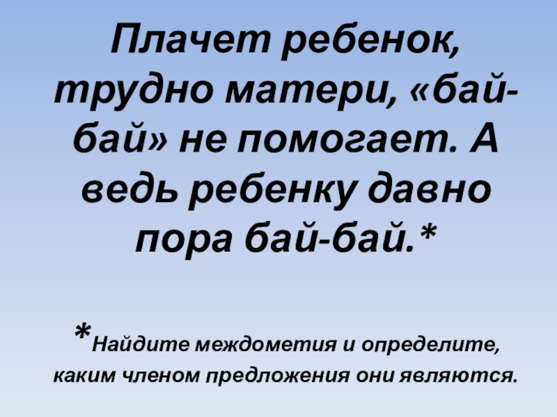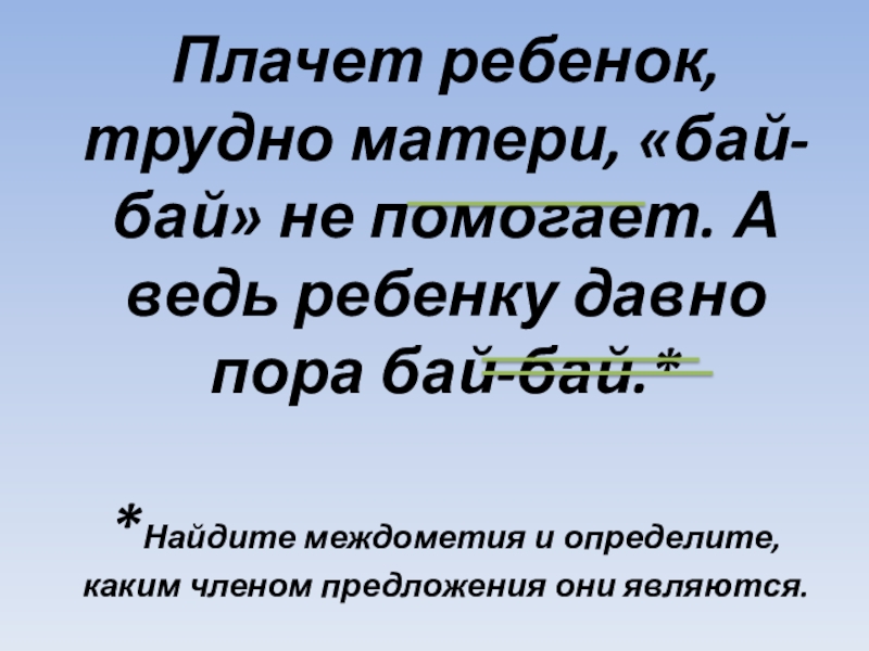 пора бай-бай.* *Найдите междометия и определите, каким членом предложения они являются.