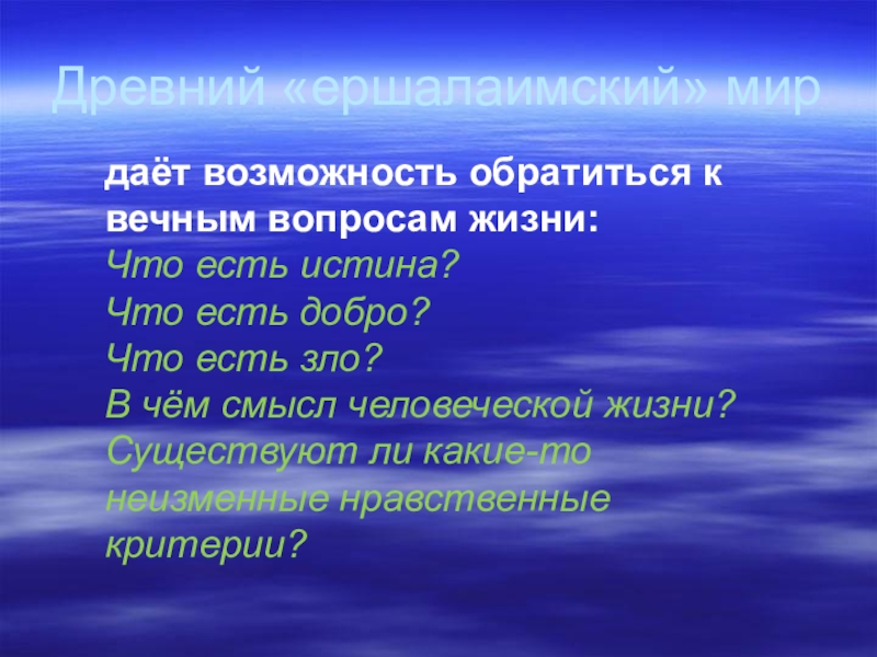 Слайд 7даёт возможность обратиться к вечным вопросам жизни: