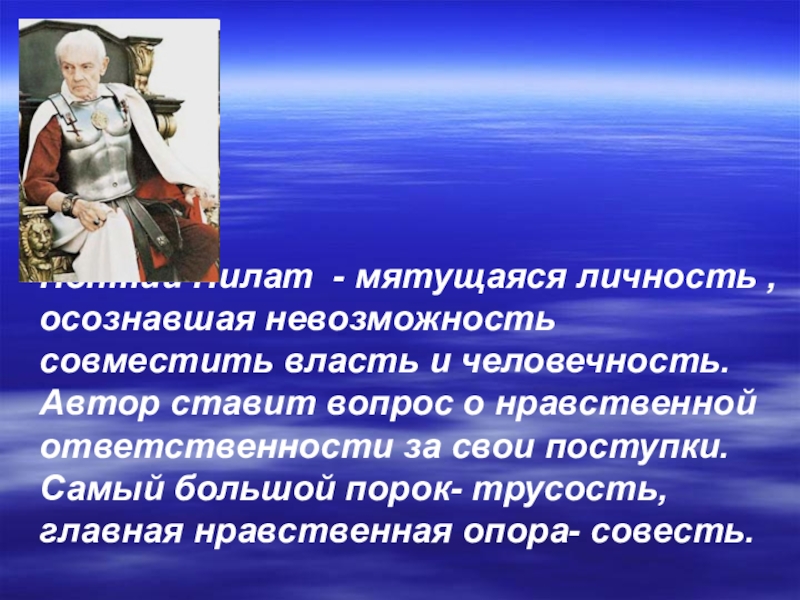 Понтий Пилат - мятущаяся личность , осознавшая невозможность
