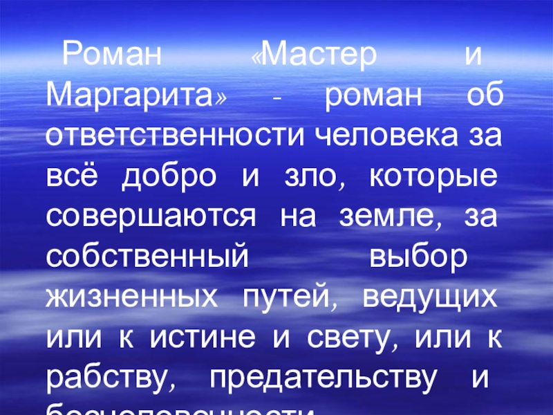 Слайд 23Роман «Мастер и Маргарита» - роман об ответственности человека за всё