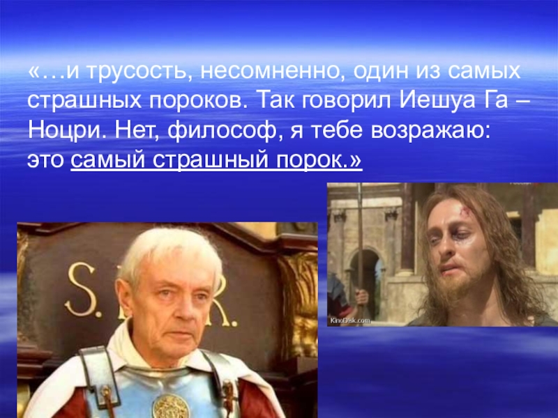 Слайд 13«…и трусость, несомненно, один из самых страшных пороков. Так говорил Иешуа