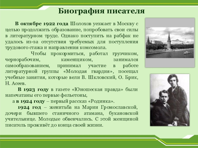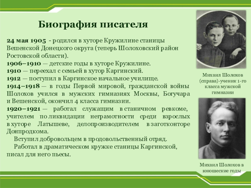 Михаил Шолохов в юношеские годы