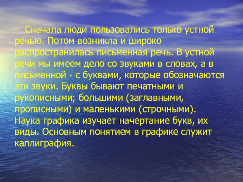 Слайд 5 Сначала люди пользовались только устной речью. Потом возникла
