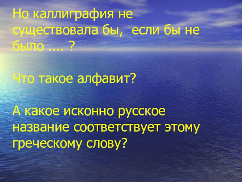 Но каллиграфия не существовала бы, если бы не было .... ?Что такое алфавит? А какое исконно русское