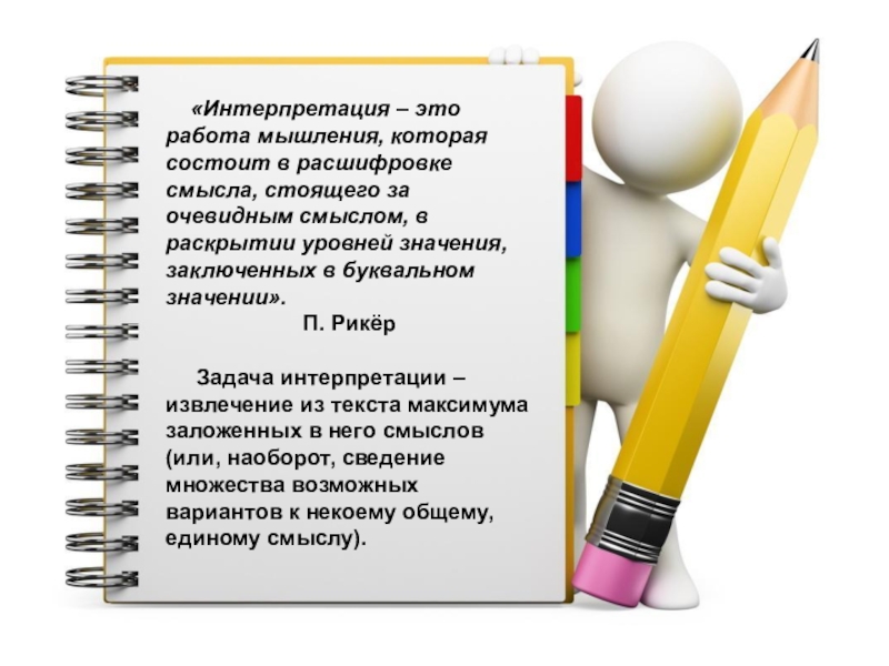 Слайд 11 «Интерпретация – это работа мышления, которая состоит в расшифровке смысла,