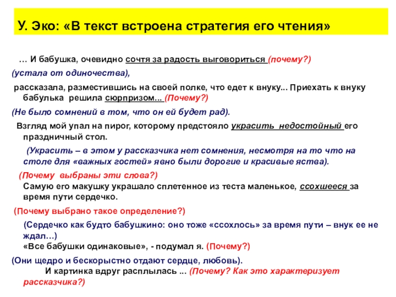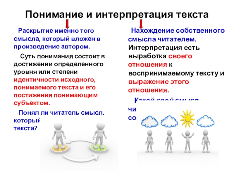 Нахождение собственного смысла читателем. Интерпретация есть выработка своего отношения к воспринимаемому тексту и выражение этого отношения.