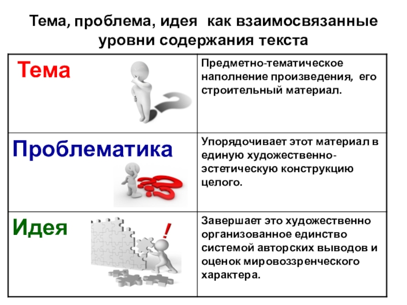 Слайд 13Тема, проблема, идея как взаимосвязанные уровни содержания текста