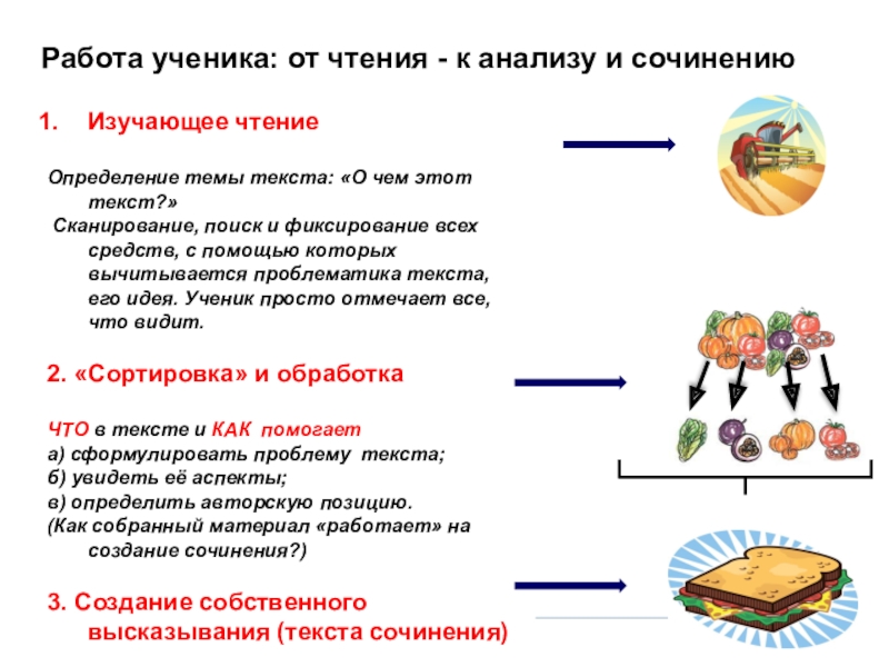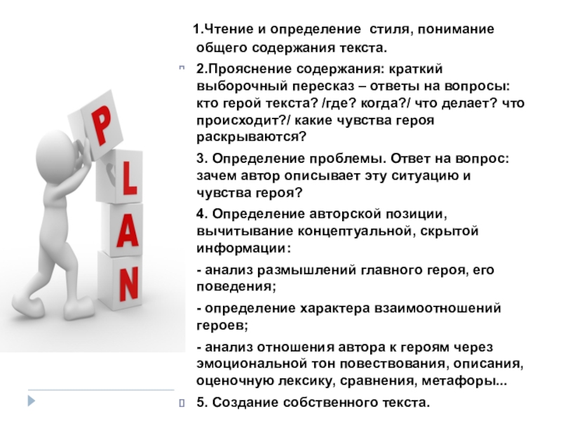 (определение темы, главной мысли текста, выделение микротем и др.);