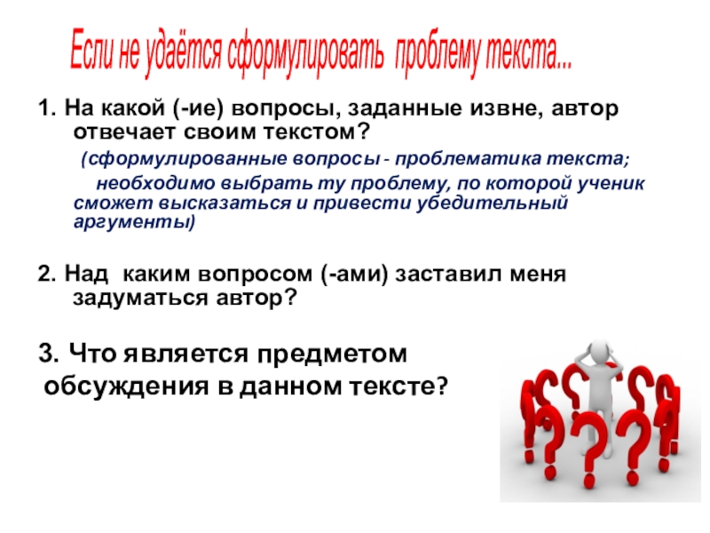 Слайд 661. На какой (-ие) вопросы, заданные извне, автор отвечает своим текстом?