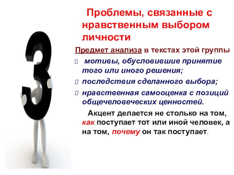 Акцент делается не столько на том, как поступает тот или иной человек, а на том, почему он так поступает.