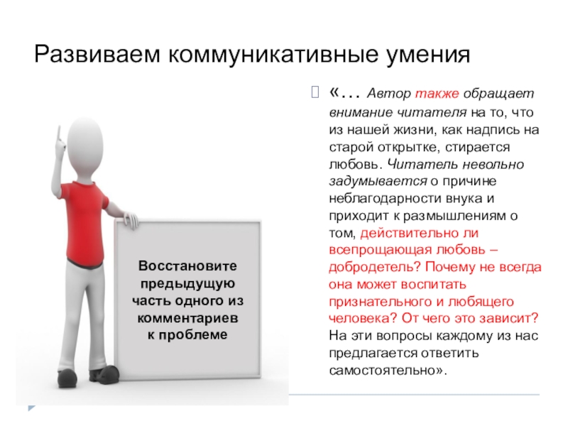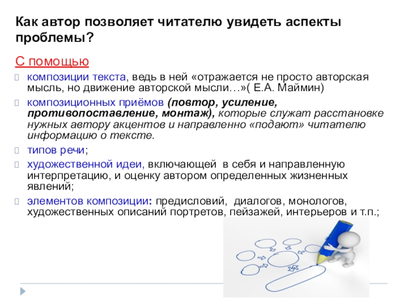 Слайд 69Как автор позволяет читателю увидеть аспекты проблемы?