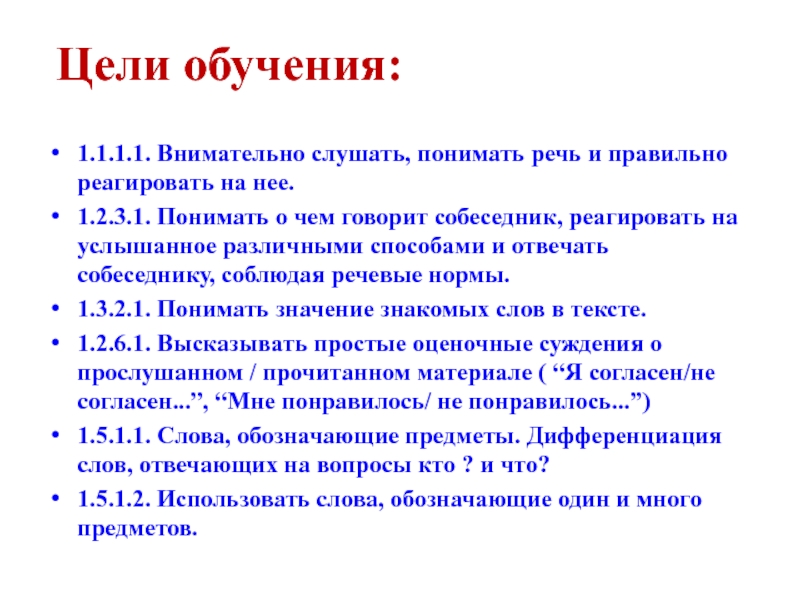 1.1.1.1. Внимательно слушать, понимать речь и правильно реагировать на нее.