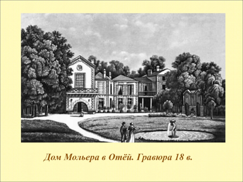 Слайд 4Дом Мольера в Отёй. Гравюра 18 в.