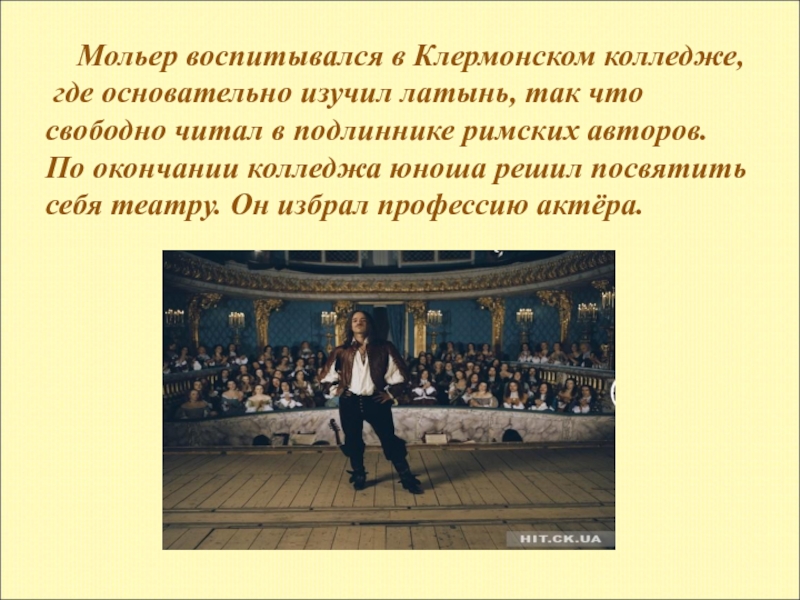 Слайд 5 Мольер воспитывался в Клермонском колледже,