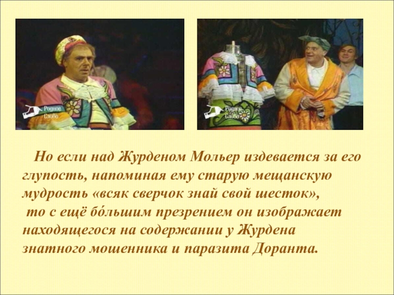 Слайд 17 Но если над Журденом Мольер издевается за его глупость,