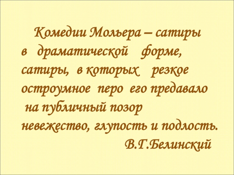 в которых осмеивал всевозможные пороки: ханжество, лицемерие, подозрительность, тупость, легкомыслие, чванство, дворянскую спесь и