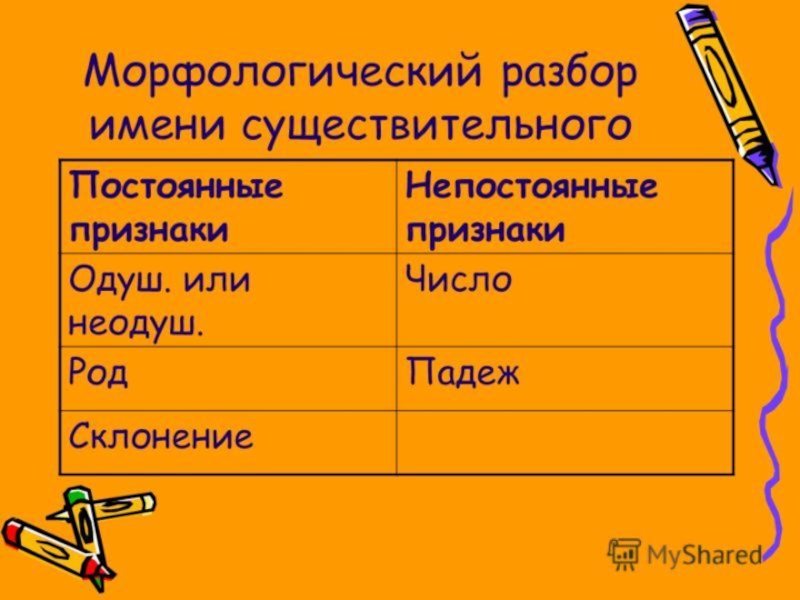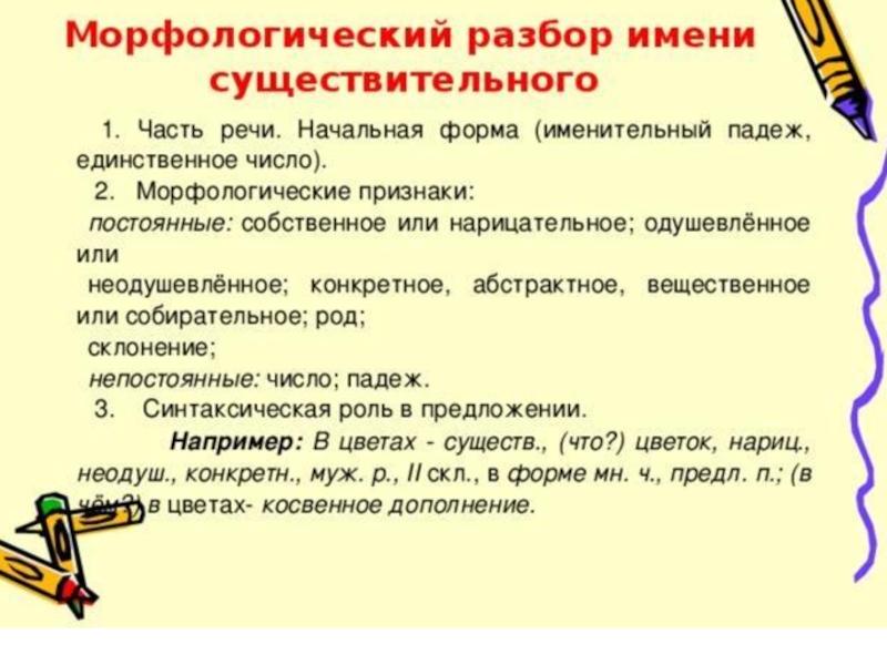 Морфологический разбор имени существительного.